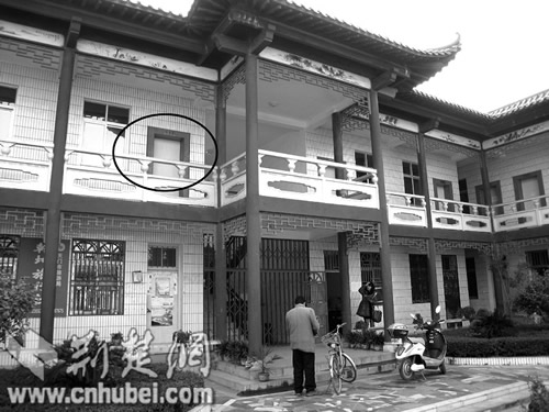 天門(mén)市園林局辦公大樓(黑圈處為案發(fā)現(xiàn)場(chǎng)——局長(zhǎng)辦公室)
