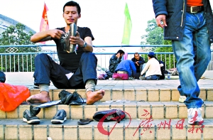 最近,“軍心”渙散了。老頭和小軍準(zhǔn)備到海南闖一闖,小路也有心同行。李練因?yàn)楹屠项^鬧了點(diǎn)矛盾,被剝奪了入伙南下的資格。其實(shí)李練也不想走。他想在春節(jié)期間攢下自己的“第一桶金”,然后擺個(gè)走鬼檔做點(diǎn)小生意。除了解決吃飯問(wèn)題,還能有個(gè)床位,睡個(gè)安穩(wěn)覺(jué)。(文/記者石善偉、何有貴 圖/實(shí)習(xí)生劉雷 記者喬軍偉)