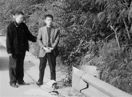 “你們偷走一個黑色公文包沒有?”民警問廖松濤!拔覀兡米吡斯陌,上了成南高速后,發(fā)現包里有1600元錢和一些紙張,我們把錢分了,把那些紙張扔出車外,把公文包也扔了。”廖松濤說。