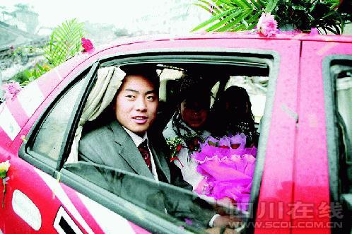 電話里,新郎喬貴田很開心:“沒想到,一夜之間,我的婚車隊成了牛年最;檐嚒覜]有想過弄個什么最牛,只是想,我們原定2008年國慶結(jié)婚的,可地震了……我和陳佳就商量:再難過,生活也要過,等歷史重新翻開一頁的時候,我們就結(jié)婚。因為她在鄧家,迎親必須穿過縣城,我想通過縣城迎親,絕對一輩子終身難忘。于是,就找管關(guān)卡的領(lǐng)導(dǎo)通融,領(lǐng)導(dǎo)一聽,竟破例讓我們通過……”