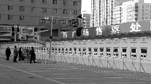 經(jīng)過5天房屋搭建和設(shè)備調(diào)試,昨日,北京西站北廣場西側(cè),由社會停車場改造的臨時(shí)售票處啟用。