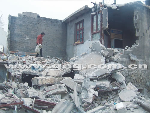 昨日下午,記者接到讀者報(bào)料后,再次來到貴陽青山路的拆遷現(xiàn)場(chǎng),看到一片拆遷廢墟上,幾棟民房均已遭到不同程度的破壞。王雪娜家房屋已經(jīng)被拆掉了大半,其母親正在廢墟堆里刨一些物品!凹依铿F(xiàn)金和攝像機(jī)等貴重物品都被搜走了,冰箱和彩電也被砸壞了……”王雪娜說,當(dāng)時(shí)在場(chǎng)的不明身份男子至少有200多人,如果不是警方趕到并鳴槍制止,或許她家的房子早就被完全拆掉了。另一拆遷戶也向記者證實(shí),當(dāng)時(shí)警方確實(shí)開槍制止了。