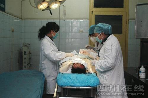 目前,由于肇事者傷情較重,無法說話,他們也無法聯(lián)系到他的家人和朋友。經(jīng)過初步診斷,肇事者甲狀腺斷裂,下頜部 有深達(dá)3厘米的刀傷。劉展說,甲狀腺斷裂是最重的傷,現(xiàn)在當(dāng)事人無法說話,但經(jīng)過搶救不會危及生命!敖酉聛,他 還需要住院觀察。(來源:四川在線-天府早報)