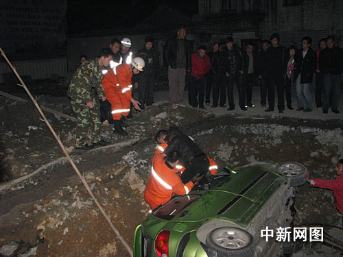 記者在現(xiàn)場看到,該輛綠色雪佛蘭轎車側(cè)翻在施工大井里,大井不少建筑鋼筋被折彎,一架竹梯也被折斷,一名男子被困在駕駛室內(nèi),現(xiàn)場凌亂不堪,道路上的警示圍墻被撞了個(gè)大洞,還清晰可見圍墻上的“注意安全,道路施工,禁止通行,請繞行”等警示標(biāo)語。