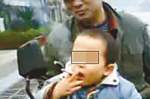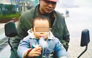 這段長達(dá)四分半鐘的視頻是一名網(wǎng)友十天前發(fā)布的,聲稱是在萬州周家壩現(xiàn)實攝錄,視頻上面一名兩三歲的小男孩坐在一輛大人的摩托車前部,在一群成年人一陣“燒起”的起哄聲中,開始表演點(diǎn)火抽煙。