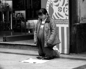 昨日,記者在某網(wǎng)站見到了這個名為《她騙取了人們的善意?》的帖子,發(fā)帖人“蕭二哥”附上了兩張照片。從照片可以看到,一名戴眼鏡穿藍(lán)色羽絨服的中年孕婦正跪在地上乞討,表情凝重。而令網(wǎng)友們詫異的是,該婦女穿的鞋子是一雙NIKE運(yùn)動鞋。網(wǎng)友“贊”表示:乞討者的“裝備”越來越好了。