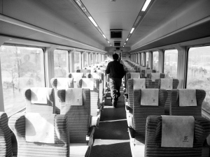 半個(gè)小時(shí)后,記者乘坐返回的Y572次列車。列車更加空曠,3號(hào)車廂中只有記者一人,車載電視也停止播放,買二等座票坐一等座也完全可以,回程時(shí)的乘客不過30人左右。