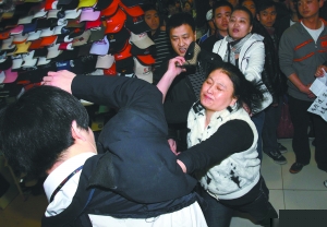 昨日9時30分,秀水街市場一樓層經(jīng)理帶著管理人員逐一實施封攤停業(yè)整頓,但剛到第一家攤位,就遭到商戶圍攻。