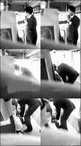在討錢的過程中,公交車每到一站,西裝男就用他蹩腳的普通話代替售票員報站。有一些女乘客受不了他的語言,都偷偷地笑了起來。