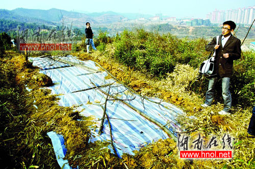 望城某鎮(zhèn)(出于保密需要,此處隱去鎮(zhèn)名)文化專(zhuān)員向記者介紹了該鎮(zhèn)墓葬被盜的情況。2009年1月20日左右,鎮(zhèn)子某村的村民發(fā)現(xiàn)某山頭幾個(gè)晚上都是凌晨的時(shí)候有燈光。村干部起初以為是誰(shuí)想偷偷土葬親人,就報(bào)告了政府部門(mén),“等公安、民政部門(mén)的人上山一看才發(fā)現(xiàn),只有一個(gè)大洞,什么都沒(méi)有,后來(lái)叫了文物部門(mén)的人過(guò)來(lái),才證實(shí)是盜洞。不過(guò)文物部門(mén)表示,該盜洞打偏了,沒(méi)有觸及墓室。”該文化專(zhuān)員還表示,“我們知道周?chē)俏奈锉Wo(hù)區(qū),一直以來(lái)我們都是實(shí)施秘密保護(hù),除了政府部門(mén)和文物部門(mén),當(dāng)?shù)貨](méi)有人知道周?chē)心乖幔@回出這個(gè)事情,我懷疑是內(nèi)部走漏了消息。”