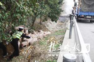 2月12日傍晚,南京浦口交巡警寧合高速中隊(duì)的值班電話響個(gè)不停!澳銈兛靵(lái),有好多豬在路上超速奔跑……”一個(gè)過(guò)境車司機(jī)打來(lái)的報(bào)警電話詼諧幽默。民警立刻行動(dòng)起來(lái)。