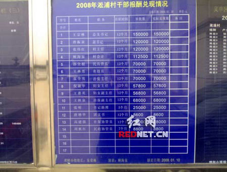 “一個(gè)村官年薪15萬,嚇得俺一跳!”16日中午,網(wǎng)友“湘水悠悠”在紅網(wǎng)論壇發(fā)帖,稱在搜狐新聞社區(qū)、天涯社區(qū)等網(wǎng)絡(luò)社區(qū)看網(wǎng)友貼出的蘇州市吳中區(qū)甪直鎮(zhèn)淞浦村村務(wù)公開的一張照片,內(nèi)容為2008年該村“村干部報(bào)酬兌現(xiàn)情況”,村支書年薪15萬,村主任12萬,月薪過萬。有網(wǎng)友感慨說,“這收入可比公務(wù)員強(qiáng)多了”。