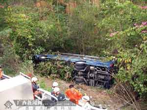 據(jù)了解,出事故的快巴重約十六七噸,且距離路面較遠(yuǎn),所以將其吊到路面上十分困難。當(dāng)天中午12時(shí)30分,邕寧排障中隊(duì)調(diào)來(lái)兩輛吊車和一輛清障車,經(jīng)過(guò)1個(gè)多小時(shí)的努力,才合力將事故車輛吊起!