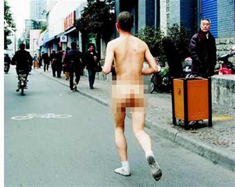 昨(17)日上午10時許,一名20歲的小伙子一絲不掛,腳穿白色襪子,手提一雙大紅女高跟鞋從一號橋沿著非機(jī)動車道一路狂奔,令行人驚詫不已。市民報警后,110巡警將男子帶到派出所接受調(diào)查。據(jù)了解,該男子高考失利后,不堪家庭、感情的壓力,有些神志不清。