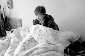 “我昨晚上是被凍醒的……”市民李女士說,20日晚,她在睡夢中被凍醒!皬19日晚上開始,我們家屋子里面的暖氣片就幾乎是涼的了。”在金河花園小區(qū),一居民一家三口擠在一張床上身穿棉衣、蓋著棉被看電視,溫度計(jì)上顯示屋里的溫度僅為7℃。