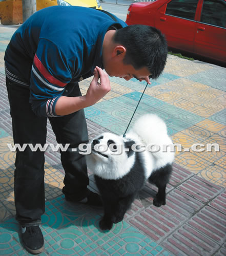 “天,好像‘功夫熊貓’哦!”昨日,一只被塑造成“熊貓”模樣的薩摩耶受到了市民的歡迎,而據(jù)寵物美容院介紹,近來這樣的“國寶”打扮很受狗主人們的青睞。