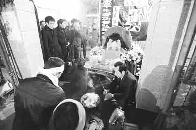 申天志一對20多歲的兒女披麻戴孝,申天志的妻子因悲傷過度沒有露面。