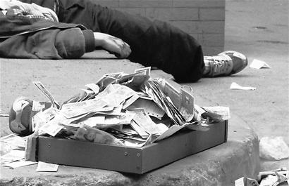 上午10時(shí)40分,警方將老人從樓上扔下的錢、名片、光盤等東西一一收拾好帶走,以作進(jìn)一步調(diào)查。