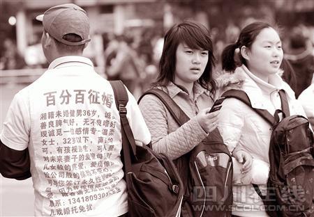 “愛情像保險(xiǎn)公司般的保險(xiǎn)不變心,與你簽訂永久性婚姻合同……”昨日中午,湖南永州人王錫國身著寫有征婚廣告的白色短袖T恤,在成都鹽市口中環(huán)廣場(chǎng)門口征婚。市民對(duì)此議論紛紛,有人說贊賞他尋愛的勇氣,但多數(shù)人說他“有毛病”。