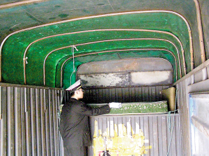 執(zhí)法人員進(jìn)一步檢查,驚奇地發(fā)現(xiàn)該貨車(chē)車(chē)廂改裝成了一個(gè)小鐵屋,車(chē)廂內(nèi)設(shè)有3張席夢(mèng)思改裝成的6個(gè)臥鋪?zhàn)弧?