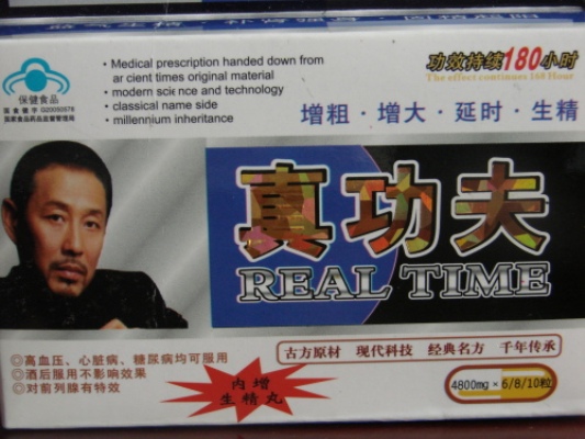 這個被網(wǎng)友戲稱為2009年度最牛的假廣告的壯陽藥品名叫“真功夫”。盒子左側(cè)赫然印著陳道明的大頭像。盒身背后標(biāo)明的生產(chǎn)廠家是香港威龍科技有限公司,地址為香港告士打路科技大廈B座2806。而據(jù)一些熟悉香港的網(wǎng)友稱,這個地址根本是子虛烏有。而其批準(zhǔn)文號是冒用江蘇一家企業(yè)的。最雷人的是,這款擺明是假藥的壯陽藥上還寫著“功效持續(xù)180小時”——網(wǎng)友笑言這款藥品持續(xù)時間竟然超過了中國最牛的手機(jī)超長待機(jī)電池。