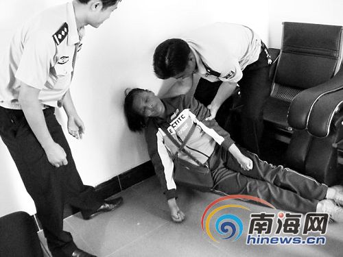 符某某被帶到上埇派出所接受調(diào)查。據(jù)該女子交代,她姓符,老公是萬(wàn)寧東澳人,此次來(lái)瓊海尋找老公。警方告訴記者,該女子曾在海南多處多次作案,每次被抓都是老一套:自稱來(lái)找老公,自稱有病。說(shuō)話間,那女子突然倒在地上,口吐白沫。民警告訴記者:“這個(gè)女人只是吐出唾沫掛在嘴角裝樣子,不是癲癇病發(fā)作!惫,5分鐘后,該女子停止抽搐,自動(dòng)坐到座位上。