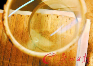 昨日(7日)下午,記者在黃作旒家中見(jiàn)到,刻著《紅樓夢(mèng)》全書的竹片每塊長(zhǎng)約24厘米、寬約1厘米,每片刻字3000余個(gè),每個(gè)字大小約0.6平方毫米,要用15倍放大鏡才能看清楚。