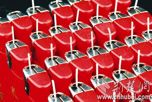 夜市上有三四家賣火機的攤位,其中一個攤主是位平頭男子!袄习逵袥]有這樣的火機?”記者向平頭男子展示了“麻果火機”,他拿著火機把玩了一下,笑著說,這就是普通火機改造的,將火嘴延長,小作坊生產(chǎn),需要專門的“班子”。