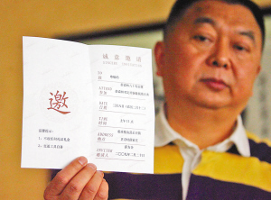 為父親慶祝80大壽,薛方全在請?zhí)凶⒚鳎翰皇杖魏味Y品禮金,交通工具自備。