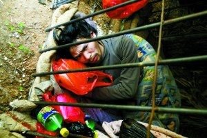 由于長期無法活動,村民把鐵籠打開后,極度虛弱的楊盛敏甚至無法坐起來。楊付于和一名專家鉆進籠子,才將楊盛敏抬了出來。雖然早有心理準(zhǔn)備,但當(dāng)看到楊盛敏兩條瘦骨如柴的腳裸上有兩圈流著膿的傷口時,楊付于夫婦的眼淚還是如斷線的珍珠往下流。這些傷口是被早前套在腳上的鐵鏈磕傷的。由于得不到及時治療,傷口已經(jīng)嚴(yán)重發(fā)炎流膿。