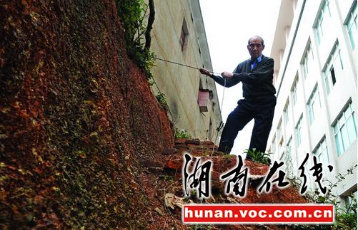 在湖南工程職業(yè)技術(shù)學(xué)院,記者采訪了參與前期拆遷事宜的朱姓工會(huì)主席。談及此事,他也是不斷搖頭!瓣P(guān)于房屋的補(bǔ)償我們是傷透了腦筋,老吳家不斷加價(jià),學(xué)院無所適從!敝旖榻B說,與老吳家一墻之隔的是學(xué)院新建的教學(xué)樓,因?yàn)椴疬w受阻,教學(xué)樓只好修改規(guī)劃!昂笠屏私5米,看起來歪歪的!