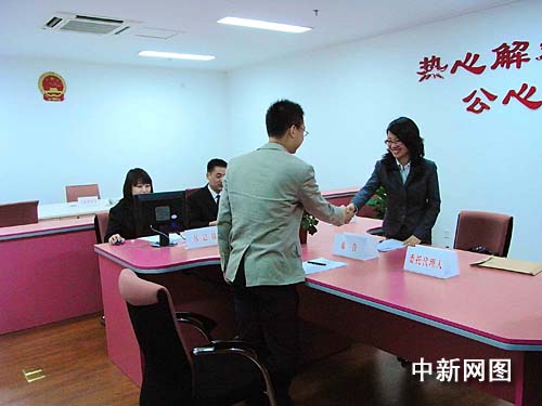 記者了解到,該工作室選擇了便于握手言和的“T型圓角”形狀的調(diào)解桌,桌子猶如一把鑰匙,寓意著打開當事人雙方的心結(jié)。而粉紅的色調(diào),綠色的植物,布藝的椅子更增添了工作室溫馨如家般的氛圍。