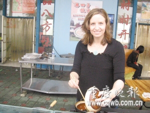 “她幫我們渡過了難關(guān)!痹谘笕私珠_酒吧的英國小伙子向熊說,剛到洋人街開店時,他們不會說重慶話,交流很困難,他就打電話求助車凱茜翻譯。遇到這樣的情況,車凱茜不管有多忙,都要抽出時間遙控指揮。為讓洋人街的老外更加團結(jié)互助,車凱茜還經(jīng)常組織一些派對。
