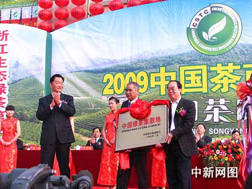 中新網(wǎng)麗水3月26日電(見習(xí)記者 周翌)記者近日獲悉,在近日舉行地 “二OO九中國茶商大會(huì)暨松陽茶葉節(jié)”上,中國茶葉流通協(xié)會(huì)授予浙江省松陽縣“中國綠茶集散地”稱號(hào),進(jìn)一步確定了浙南茶葉市場(chǎng)為全國最大的綠茶產(chǎn)地交易市場(chǎng)的地位。