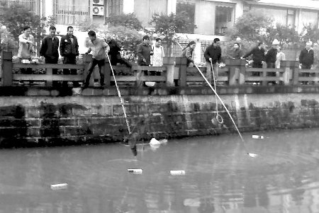 在河邊跑步的生意人李先生也目擊了這盛況空前的一幕———由于香煙的重量很輕,有人好奇撈上來之后意外發(fā)現(xiàn)里面并沒有打濕,遂被不少市民效仿。撈香煙頓時(shí)成了早起市民們的“當(dāng)務(wù)之急”。李先生看到,甚至有大爺不顧年邁,衣服也不脫就跳下河中,搶撈了七八條云煙上岸。