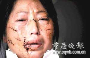 “他的脾氣一直很暴躁,但承認錯誤也快得很,然后又再犯!毙苡罆Q,為免遭丈夫毒手,她前年來到江津區(qū)珞璜鎮(zhèn)一家茶館幫工,每月工資600元。“他跑來找我要錢,每天100元,拿不出就逼我出去當小姐,然后又是一頓打。”