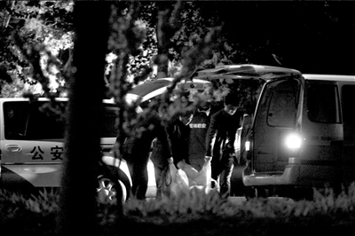 前天下午6點(diǎn),在學(xué)校西側(cè)的小樹林內(nèi),學(xué)生家長(zhǎng)和同學(xué)發(fā)現(xiàn)了兩具尸體。當(dāng)晚,樹林旁的路邊停了十余輛警車,多名警察手持電筒、牽引著警犬在樹林內(nèi)勘察,并陸續(xù)從現(xiàn)場(chǎng)提取相關(guān)證據(jù)帶離現(xiàn)場(chǎng)。由于現(xiàn)場(chǎng)太暗,警方還調(diào)來一輛照明警車。昨天零點(diǎn)50分左右,兩具尸體被運(yùn)離現(xiàn)場(chǎng)。