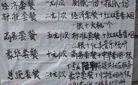 據(jù)悉,告示上將該項(xiàng)服務(wù)分為五個(gè)等級,分別是經(jīng)濟(jì)套餐、標(biāo)準(zhǔn)套餐、商務(wù)套餐、豪華套餐、總統(tǒng)套餐。每個(gè)套餐還列出了各自的服務(wù)項(xiàng)目。例如經(jīng)濟(jì)套餐就贈送廁紙一份、報(bào)紙一份,收費(fèi)也相當(dāng)?shù)土瑑H僅需要一元;2元的標(biāo)準(zhǔn)套餐則在經(jīng)濟(jì)套餐的基礎(chǔ)上送出紅雙喜香煙一根火機(jī)一個(gè)。最雷人的應(yīng)該算是價(jià)值10元的豪華套餐,竟然有專業(yè)陪聊的服務(wù)項(xiàng)目。而20元的總統(tǒng)套餐也讓人摸不著頭腦,居然包括彩票一張和精美紀(jì)念冊。這些都讓網(wǎng)友們好奇不已:不知道當(dāng)你如廁的時(shí)候,有人在一旁陪你談心,會是什么樣的感受?而精美紀(jì)念冊的內(nèi)容,又會是什么?