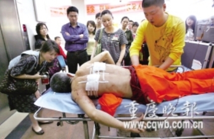 昨日下午5點(diǎn),環(huán)衛(wèi)工魏泉茂被送到市急救中心搶救。他背部雙側(cè)被砍傷,最深處為5厘米,肩胛骨被砍斷,幸無(wú)生命危險(xiǎn)。據(jù)魏泉茂說(shuō),當(dāng)時(shí)他在凱旋路附近做清潔,一輛灰色轎車欲停在他正在清理垃圾的地方。魏泉茂表示,等清掃干凈了再讓開。雙方爭(zhēng)吵起來(lái)。隨后,魏泉茂推著垃圾車來(lái)到了儲(chǔ)奇門垃圾站對(duì)面。一名男子突然持刀沖向他,一來(lái)就是兩刀。隨后,男子招下一輛出租車逃跑。魏泉茂說(shuō),砍他的人就是與自己爭(zhēng)吵的那名司機(jī)。目前,儲(chǔ)奇門派出所正在調(diào)查此案。(朱雋 龍珊)