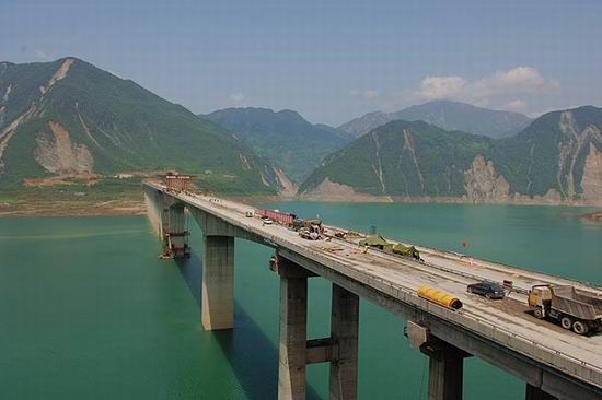 都汶路建設(shè)世界關(guān)注、各級(jí)重視、群眾期盼。大地震中,該路高速段受損嚴(yán)重,其中廟子坪特大橋、紫坪鋪隧道和龍溪隧道受損尤為嚴(yán)重。如今,都江堰至映秀高速公路進(jìn)入最后的攻堅(jiān)階段,“一橋兩隧”能否順利修復(fù)成為高速公路5月12日通車(chē)的最大關(guān)鍵點(diǎn)。
