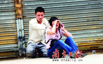 鄺女士不停哭泣,偶爾舉起手機(jī)打電話,她的脖子下有一把30厘米長(zhǎng)的刀,她身后的重慶男子張×述不停喊著:“別逼我!”……昨日上午10時(shí)許,鄺女士乘坐公交車至三元里古廟站下車,正沿著廣園中路走,兩名男子突然出現(xiàn)在她面前,其中一名用水果刀抵著她的脖子。這對(duì)來(lái)自重慶開縣的兄弟張×述和張×均聲稱要錢救家中老母親。警方與之僵持了90分鐘,終于將其制服,鄺女士獲救。