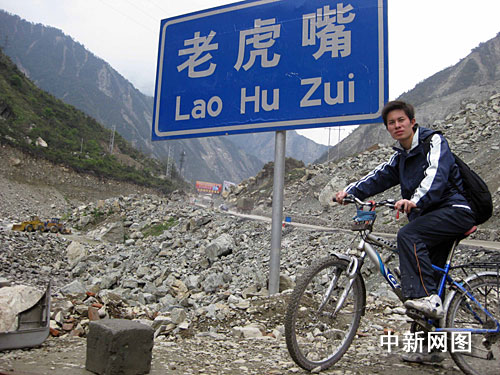 兩周前,西南大學研究生李應財獨自一人騎自行車前往四川地震災區(qū),一路祭奠那些在“天災”中逝去的人們。
