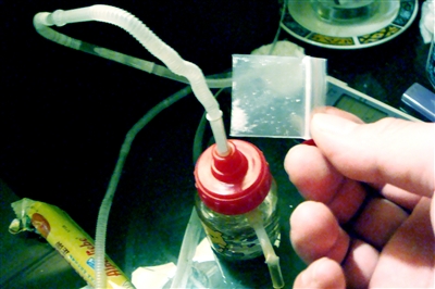 燈一打開(kāi),只見(jiàn)茶幾上擺著吃剩的生日蛋糕,3個(gè)用來(lái)吸食新型毒品的瓶子,臥室桌上也擺著瓶子,散落著大量的塑料吸管。之后,該房間的6男3女全部被帶回分局進(jìn)行尿檢,證明均吸食了麻果。