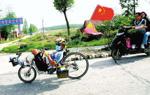 由于不好打擾騎車人的“騎興”,記者只能在與其短暫并行時了解到,他來自北京,準備就這樣一直騎到深圳。問起他在武漢境內(nèi)的騎行的感覺,他高高豎起了大拇指。記者與他分手繼續(xù)做了相關(guān)采訪,才知道這位北京哥們兒可不是什么“怪物人”,他的座駕的專業(yè)名稱叫“躺車”,在國外已經(jīng)風(fēng)靡了近一個世紀,擁有了一大批愛好者。“躺車”發(fā)力依靠的是腳力和腰力,比一般的自行車更省力、更舒服。一輛高質(zhì)量的“躺車”至少也要1200美元。如今國內(nèi)各地也開始出現(xiàn)不少“躺車”發(fā)燒友,他們大多自己DIY,還成立了聯(lián)誼會,開展專業(yè)比賽呢。(記者張寧)