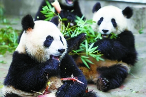 在進(jìn)京的6只大熊貓中,只有華奧和錦意在雅安。早晨9時,當(dāng)記者來到位于保護(hù)中心豹子山時,看到華奧慢悠悠地走出獸舍,看到記者的照相機(jī)鏡頭,它突然閃到了木樁后,直等到飼養(yǎng)員劉娟把它拽出來。雖然華奧是個“小男孩兒”,但吃起東西來卻很斯文,別的大熊貓都或躲或臥,它卻端端正正地坐在那,像個“淑女”。住在科研樓的錦意正好與華奧相反,雖是個女孩,卻很淘氣,先是盯上了記者的包,又抓又咬,之后又抱著記者的腿啃個不停,就像個淘氣的小男孩兒。