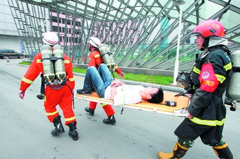 荷花園電信大樓高218米,共有地面建筑42層,是典型的超高層建筑。在昨日的演練中,最引人矚目的是高層供水加壓項目。“在高層建筑火災(zāi)中,當(dāng)消防戰(zhàn)士進(jìn)入火場時,難免會遇到室內(nèi)消火栓斷水的情況,這就要求我們必須有備用方案!笔邢乐ш爡⒅\長葛佳軍告訴記者,此次演練的主要內(nèi)容之一就是高空加壓。此次假設(shè)的起火點位于39層,在消防車的轟鳴聲中,水帶迅速充足,一條白色的水龍沖天而起。“目前,我們的高空加壓垂直高度可達(dá)到280米左右。”葛佳軍說。(記者 千靈坡)