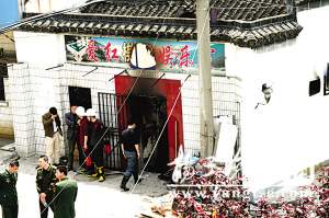 “愛紅棋牌室”西側(cè)緊挨古運河,在一條名為“缺口河?xùn)|小街”的巷子的最里面。記者在現(xiàn)場看到,“愛紅棋牌室”東、南、北3面道路周圍都被警方用2至3道警戒線封鎖,大量警力在現(xiàn)場維持秩序。由于圍觀群眾太多,躍進橋上的警戒線出現(xiàn)了多次被人潮擠斷的情況,民警及時進行修復(fù)和更換。
