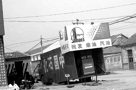 在小王鄉(xiāng)、佘家巷鄉(xiāng)、信陽鄉(xiāng)、柳堡鄉(xiāng)、水灣鎮(zhèn)、碣石山鎮(zhèn)、埕口鎮(zhèn)、車鎮(zhèn)、馬山子鎮(zhèn)等鄉(xiāng)鎮(zhèn),無一不存在“黑加油站”。有的將油罐高掛在墻壁上,管子順下來打開閥門就加油;還有的自己制造加油機(jī),外表與壓水井差不多;有的則干脆擺幾個塑料桶就干起加油營生;還有的像大篷車似的等等,不一而足。