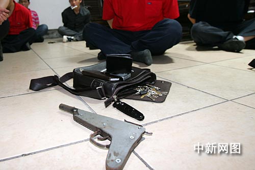 據(jù)了解,警方當(dāng)場(chǎng)繳獲賭具一批和賭資人民幣30000多元,并在放風(fēng)男子的包內(nèi)查獲自制槍支和管制刀具各一把。