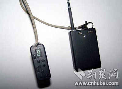 4人交待,“遙控器”名“鎖車干擾器”(如右圖),是上月從廣東買(mǎi)回的,準(zhǔn)備在武漢“大干一場(chǎng)”。當(dāng)日,他們用“鎖車干擾器”已打開(kāi)2輛轎車車門(mén),車內(nèi)沒(méi)有財(cái)物;開(kāi)第3輛車車門(mén)時(shí)被抓。